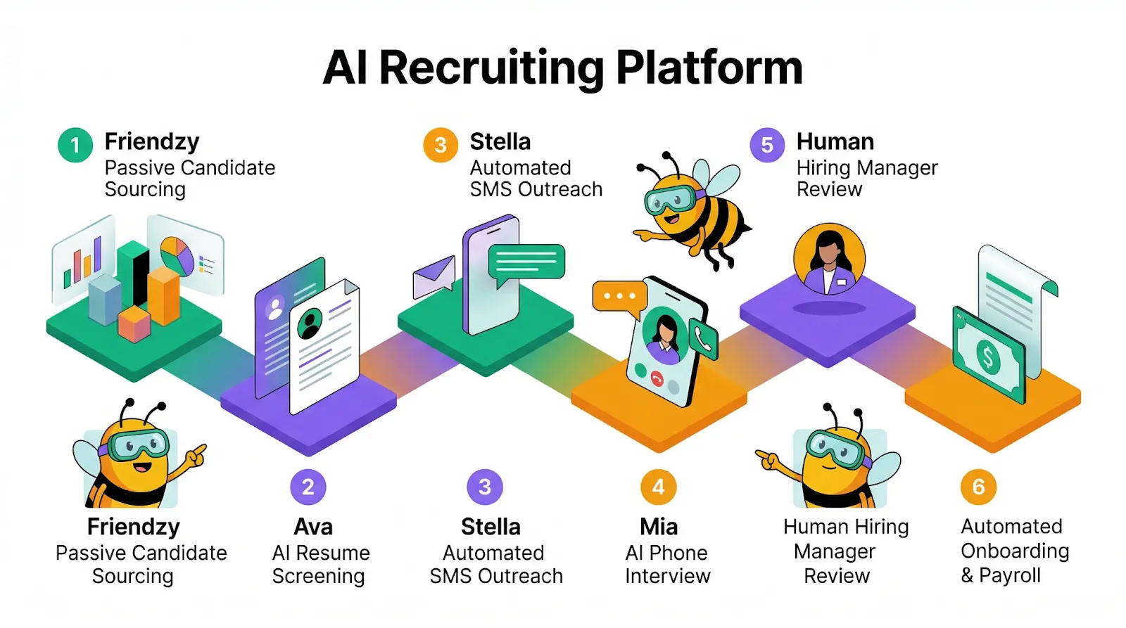 An AI recruiting platform is a software ecosystem that uses artificial intelligence to automate the entire hiring lifecycle. It handles resume screening, candidate outreach, interview scheduling, and initial phone screens without human intervention.